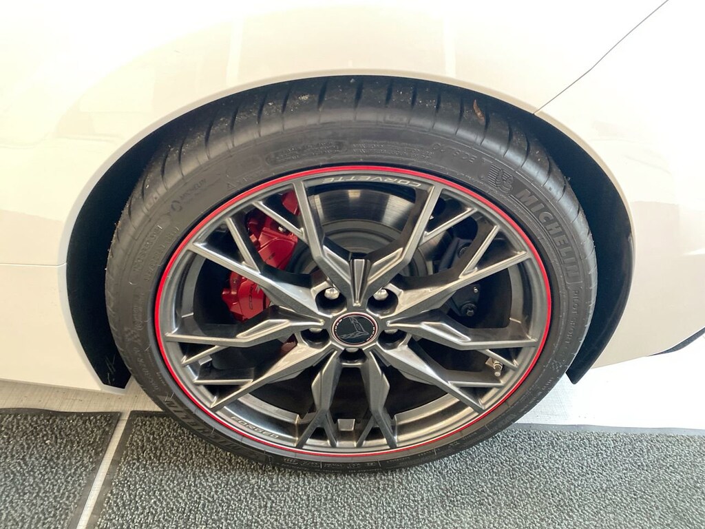 - LPO COMPOSITE ROCKER EXTENSIONS BLACK Genuine Corvette Accessory,CARBON FLASH METALLIC-PAINTED OUTSIDE MIRRORS AND SPOILER (WHEN EQUIPPED) includes (DRG) Carbon Flash Metallic-painted outside mirrors (Also includes Carbon Flash Metallic-painted spoiler when (Z51) Z51 Performance Package or (TVS) low-profile rear spoiler and front splitter is ordered.,3LT PREFERRED EQUIPMENT GROUP includes standard equipment,PLAQUE PERSONALIZED CUSTOM-MADE WITH YOUR NAME AND VIN,LPO CUSTOM SPLASH GUARDS BLACK Genuine Corvette Accessory,CERAMIC WHITE WITH RED STITCHING NAPA LEATHER SEATING SURFACES WITH PERFORATED INSERTS Includes (N26) sueded microfiber-wrapped steering wheel.),LPO LT2 ENGINE COVER IN EDGE RED Genuine Corvette Accessory,CALIPERS EDGE RED-PAINTED,TRANSMISSION 8-SPEED DUAL CLUTCH INCLUDES MANUAL AND AUTO MODES (STD),STEERING WHEEL SUEDED MICROFIBER-WRAPPED,SPOILER REAR Z51,AUDIO SYSTEM CHEVROLET INFOTAINMENT 3 PREMIUM SYSTEM WITH CONNECTED NAVIGATION 8 diagonal HD color touchscreen AM/FM stereo Bluetooth audio streaming for 2 active devices Apple CarPlay and Android Auto capable enhanced voice recognition additional memory for in-vehicle apps cloud connected personalization for select infotainment and vehicle settings. (STD),COOLING SYSTEM HEAVY-DUTY,WHITE PEARL METALLIC TRICOAT,Z51 PERFORMANCE PACKAGE includes (J55) Z51 performance brakes (FE3) Z51 performance suspension (NPP) performance exhaust (GM7) performance rear axle ratio (G96) Electronic Limited Slip Differential (eLSD) (T0A) Z51 rear spoiler front splitter (XFQ) 245/35ZR19 front and 305/30ZR20 rear blackwall high performance tires and (V08) heavy-duty cooling system,SEAT BELT COLOR TORCH RED,STEALTH INTERIOR TRIM PACKAGE dark finish aluminum trim,EXHAUST TIPS BLACK,PERFORMANCE TRACTION MANAGEMENT,LPO REAR FASCIA/ROOF STORAGE PROTECTOR IN BLACK with embroidered crossed flags logo Genuine Corvette Accessory,WHEELS 19 X 8.5 (48.3 CM X 21.6 CM) FRONT AND 20 X 11 (50.8 CM X 27.9 CM) REAR 20-SPOKE MIDNIGHT GRAY FORGED ALUMINUM WITH RED STRIPE,SUSPENSION Z51 PERFORMANCE WITH MAGNETIC SELECTIVE RIDE CONTROL includes (B4Z) Performance Traction Management,DIFFERENTIAL ELECTRONIC LIMITED-SLIP,BATTERY PROTECTION PACKAGE,MIRRORS OUTSIDE CARBON FLASH METALLIC-PAINTED,LPO FRONT RADIATOR GRILLE SCREENS Genuine Corvette Accessory,EXHAUST PERFORMANCE aggressive exhaust sound varies with driver mode selected with stainless-steel tips (5 hp and torque increase.,ENGINE 6.2L V8 DI HIGH-OUTPUT Variable Valve Timing (VVT) Active Fuel Management (AFM) (490 hp [365.4 kW] @ 6450 rpm 465 lb-ft of torque [627.8 N-m] @ 5150 rpm) (STD),TIRES 245/35ZR19 FRONT AND 305/30ZR20 REAR BLACKWALL HIGH PERFORMANCE,LPO 70TH ANNIVERSARY SET OF PREMIUM LEATHER WEEKEND/TRAVEL BAGS Genuine Corvette Accessory,SEATS GT2 BUCKET (STD),BRAKES Z51 PERFORMANCE larger brake rotors with Z51 logo on calipers